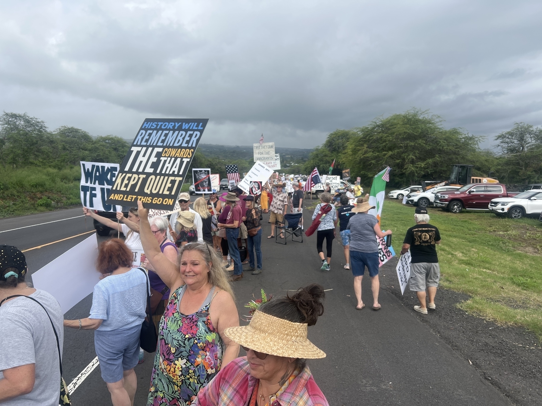 Likely not doing more protests in Kona. It’s singing to the choir. We wave to people honking and laugh at the those showing the middle finger. If ice or more was in our community like in Portland, Chicago or LA I’d be the first in line. Putting my energy online and emails right now