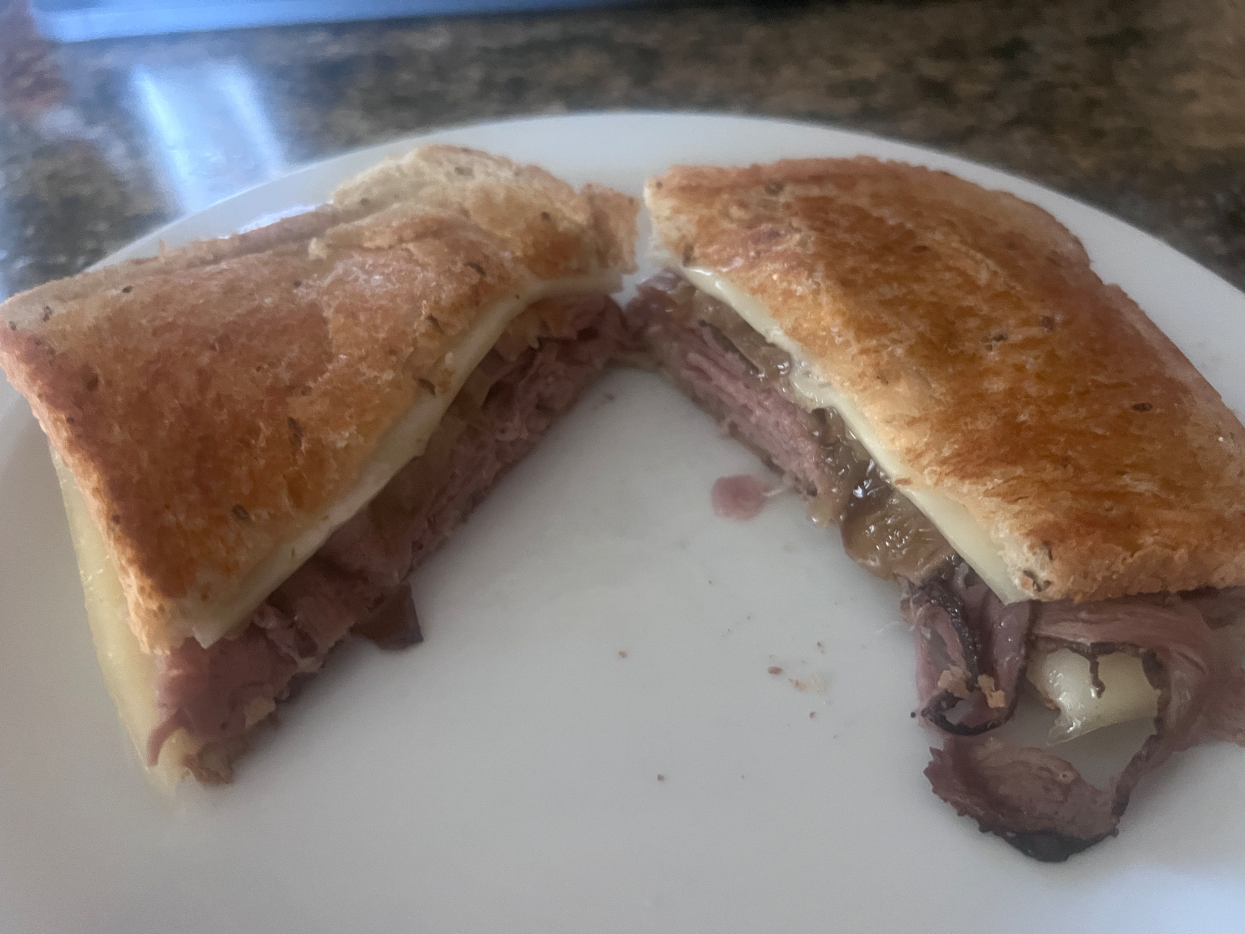 Made homemade patty melt yesterday. Had some sliced roast beef in the fridge, so I made a roast beef on toasted rye with caramelized onions, Swiss cheese and Russian dressing. Yum